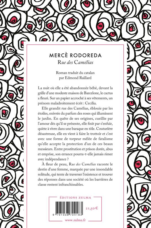 La nuit où elle a été abandonnée bébé, devant la grille qui donne sur le jardin de Monsieur Jaume et Madame Magdalena, le cactus qui pousse au creux du mur a fleuri. Sur un papier déchiré accroché à ses vêtements, on a maladroitement écrit un prénom : Cecília – mais qui ? Cecília grandit rue des Camélias, dans une maison modeste de Barcelone, éblouie par les étoiles, enivrée du parfum des roses qui illuminent le jardin. Elle rêve d’ors et de paillettes, d’aller à l’opéra au prestigieux Liceu. Elle est cueillie par l’amour dès qu’il se présente, quitte à vivre dans une baraque en tôle. Couturière désastreuse, elle en vient à faire le trottoir et c’est avec une forme de torpeur mêlée de fatalisme qu’elle accepte la protection d’un de ces beaux messieurs. Entre prostitution et prison dorée, abus et emprise, son errance pourra-t-elle jamais rimer avec indépendance ? À fleur de peau, Rue des Camélias raconte le destin d’une femme qui tente de traverser l’existence au-delà de sa condition, au-delà de la quête des origines, de la fin de l’innocence et d’une insondable solitude – dans une société où les barrières de genre et de classe restent infranchissables.