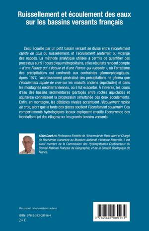 L'eau écoulée se divise en deux catégories : l'écoulement rapide de crue ou ruissellement et l'écoulement souterrain ou vidange des nappes. Les 91 cours d'eau métropolitains étudiés rendent compte d'"une France qui s'écoule et d'une France qui ruisselle", où l'erratisme des précipitations est confronté aux contraintes géomorphologiques.