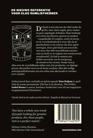 De nieuwe referentie voor elke rumliefhebber Dit boek is een ode aan de rebel onder de spirits: rum. Geen regels, geen wetten en geen opgelegde definities. Rum herbergt een schat aan kleuren, geuren en smaken - toegankelijk of complex, zacht of stevig - en de verscheidenheid is even rijk als de geschiedenis en de cultuur die deze spirit omringen. Deze gids biedt een overzicht van meer dan 600 verschillende soorten rum en deelt ze in volgens een vernieuwend smaakmodel. Zo heb je meteen een helder overzicht van de oorsprong, de smaak en het aroma. Verder lees je alles over de verschillende stijlen rum, het productie- en rijpingsproces, the perfect serve en de beste rumbars. Met alle nodige achtergrondinformatie om een echte rum aficionado te worden. Let's rumble!