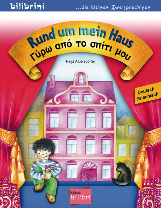 Rund um mein Haus, aus der Reihe bilibrini - die kleinen Zweisprachigen, ist ein zweisprachiges Kinderbuch auf Deutsch und Griechisch für Kinder ab 3 Jahren. Das Buch schildert in kurzen einfachen Sätzen die Lebenswelt eines Kleinkindes. Neben zentralen Elementen wie Spielsachen, Tieren, Freunden etc. vermittelt der Text zudem Farben und lokale Präpositionen (vor, hinter, über, unter...).Farbenfrohe Illustrationen laden zum Betrachten ein und eine Wort-Bild-Leiste auf jeder Seite greift wichtige Gegenstände erneut auf und fördert gezielt das Suchen, Finden und Benennen.Das Buch ist in weiteren Sprachfassungen - immer in Kombination mit Deutsch - erhältlich.