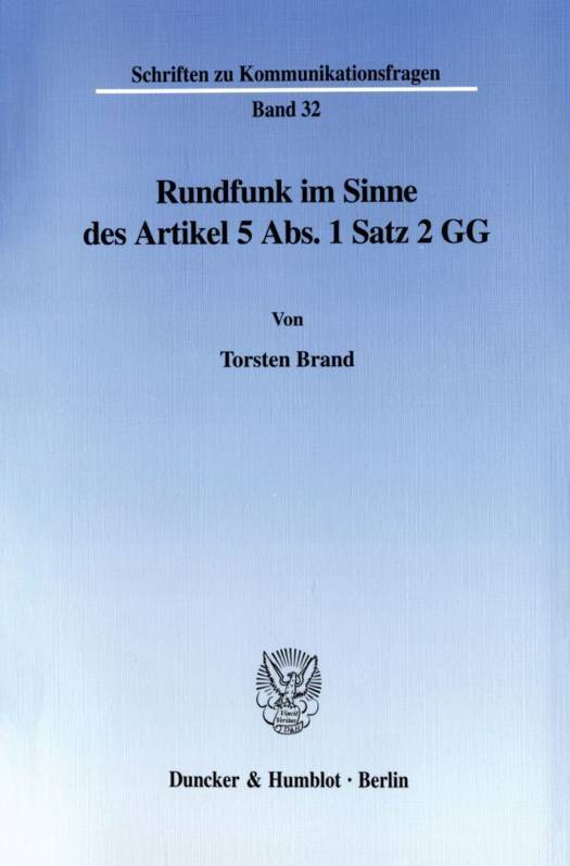 Der Verfasser untersucht daher in einem ersten Teil, welche Voraussetzungen Rundfunk im Sinne des Grundgesetzes hat. Ausgehend von der Rundfunk-Definition Hans Bredows aus der Zeit der Grundgesetz-Entstehung sichtet, strukturiert und bewertet der Autor Literatur und Rechtsprechung bis zum Herbst 2000; er schließt sich dabei einem weiten Begriffsverständnis an. So erfaßt Rundfunk jeden nur denkbaren Inhalt, den ein Kommunikator aus dem unendlichen Fundus möglicher Informationen ausgewählt hat; auf die publizistische Relevanz der jeweiligen »Darbietung« kommt es hingegen nicht an, da letztlich jedweder Inhalt einen meinungsbildenden Prozeß beim Rezipienten in Gang setzen kann. Für den Tatbestand Rundfunk ist überdies auch unerheblich, über welche Selektionsoptionen inhaltlicher oder zeitlicher Art der Empfänger gebietet. Entscheidendes Abgrenzungskriterium zur Individualkommunikation ist vielmehr, ob sich ein Angebot an eine beliebige Zahl von Empfängern wendet und dieser »Allgemeinheit« auch zugänglich ist.