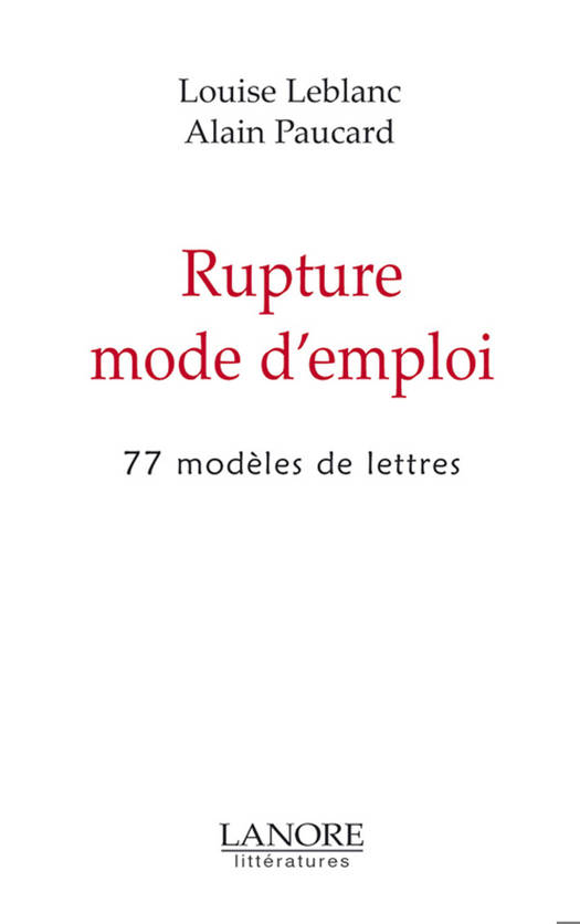 Deux écrivains, l'un parisien, l'autre québécois, proposent aux hommes et aux femmes des moyens de s'en sortir, de quitter la lice, en encourageant la parole écrite, au détriment des textos, SMS et autres courriers électroniques. Utiliser le langage écrit respecte, voire honore, ceux que l'on quitte. En 77 lettres de rupture, proposées chacune alternativement, les deux auteurs recréent un univers, fait de malentendus, de situations équivoques, de faux départs et donc d'arrivées incertaines.