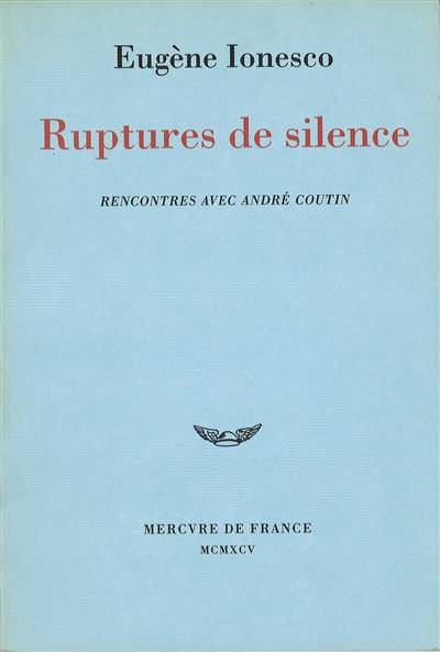 Ces entretiens inédits ont précédé la chute du communisme dont Eugène Ionesco a eu avant d'autres la prémonition. Mais ils engagent le lecteur d'aujourd'hui bien au-delà de ce séisme politique. Les Ruptures de silence éclairent les limites de l'engagement politique pour les artistes et préviennent de nouvelles trahisons possibles. Elles annoncent aux clercs du troisième millénaire qu'il ne leur reste que la pauvreté de Job en fait d'idéologie et, partant, la liberté totale d'expression. Nos échanges ont eu lieu dans une "traversée du désert" du créateur qui le mettait dans un état de lucidité extrême. La force émotionnelle qui se dégage de son interrogation sur la condition humaine nous rend la voix de Ionesco présente et fraternelle. André Coutin.