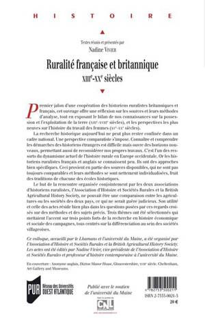 Premier jalon d’une coopération des historiens ruralistes britanniques et français, cet ouvrage offre une réflexion sur les sources et leurs méthodes d’analyse, tout en exposant le bilan de nos connaissances sur la possession et l’exploitation de la terre ( XIII e - XVIII e siècles), et les perspectives les plus neuves sur l’histoire du travail des femmes ( XVe - XXe siècles).