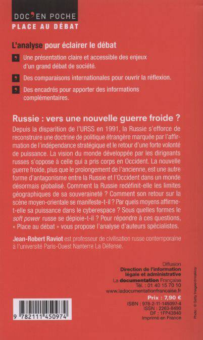 Depuis la disparition de l'URSS en 1991, la Russie s'efforce de reconstruire une doctrine de politique étrangère marquée par l'affirmation de l'indépendance stratégique et le retour d'une forte volonté de puissance. La vision du monde développée par les dirigeants russes s'oppose à celle qui a pris corps en Occident. La nouvelle guerre froide, plus que le prolongement de l'ancienne, est une autre forme d'antagonisme entre la Russie et l'Occident dans un monde désormais globalisé. Comment la Russie redéfinit-elle les limites géographiques de sa souveraineté ? Comment son retour sur la scène moyen-orientale se manifeste-t-il ? Par quels moyens affirme-t-elle sa puissance dans le cyberespace ? Sous quelles formes le soft power russe se déploie-t-il ? Pour répondre à ces questions, « Place au débat » vous propose l'analyse d'auteurs spécialistes.
