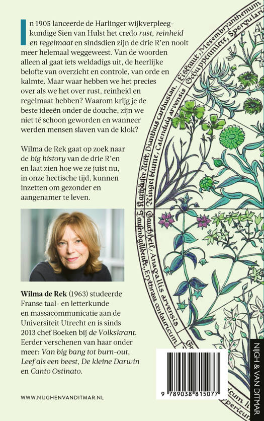 In 1905 lanceerde de Harlinger wijkverpleegkundige Sien van Hulst het credo rust, reinheid en regelmaat en sindsdien zijn de drie R’en nooit meer helemaal weggeweest. Van de woorden alleen al gaat iets weldadigs uit, de heerlijke belofte van overzicht en controle, van orde en kalmte. Maar waar hebben we het precies over als we het over rust, reinheid en regelmaat hebben? Waarom krijg je de beste ideeën onder de douche, zijn we niet té schoon geworden en wanneer werden mensen slaven van de klok?