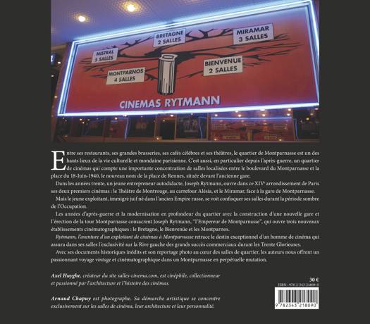 Dans les années trente, un jeune entrepreneur autodidacte, Joseph Rytmann, ouvre dans ce XIVe arrondissement de Paris ses deux premiers cinémas : le Théâtre de Montrouge, au carrefour Alésia, et le Miramar, face à la gare de Montparnasse. Rytmann, l'aventure d'un exploitant de cinémas à Montparnasse retrace le destin exceptionnel d'un homme de cinéma qui assura dans ses salles l'exclusivité sur la Rive gauche des grands succès commerciaux durant les Trente Glorieuses. Avec ses documents historiques inédits et son reportage photo au cur des salles de quartier, les auteurs nous offrent un passionnant voyage vintage et cinématographique dans un Montparnasse en perpétuelle mutation.
