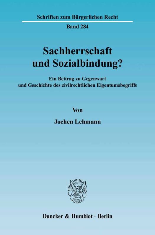 Jochen Lehmann beschränkt sich in seiner Darstellung nicht auf die Dogmatik des Eigentumsbegriffs, sondern schildert auch die historischen und philosophischen Hintergründe, ohne welche die Entwicklung der Diskussion um den richtigen Eigentumsbegriff nicht verständlich würde. So entsteht ein umfassendes Bild der vor allem im 19. und 20. Jahrhundert zum Teil erbittert geführten Auseinandersetzungen um die richtige Definition des Eigentums. Dabei zeigt sich, dass der durch die umfassende Sachherrschaft des Eigentümers gekennzeichnete Eigentumsbegriff, der - seit dem Erlass des BGB unverändert - dem Zivilrecht zugrunde liegt, das Ende einer langen dogmatischen Entwicklung markiert. Der soziale Eigentumsbegriff, der die Bindung des Eigentümers durch die Interessen der Gesellschaft betont, ist hingegen ein Produkt der rechtspolitischen Auseinandersetzungen des 19. Jahrhunderts und in wesentlichen Teilen eine Schöpfung des Germanisten Otto von Gierke. Während dem deshalb auch als "deutsch" bezeichneten Eigentumsbegriff ein merklicher Einfluss auf die Gesetzgebungsarbeiten zum BGB versagt blieb, bestimmte er während des 20. Jahrhunderts die häufig rechtspolitische Auseinandersetzung um den Eigentumsbegriff und ist bis heute in der Diskussion um die Wiederbelebung des geteilten Eigentums lebendig geblieben.