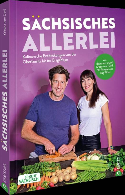 Die Dialektfluencerin und »Sachsen-Muddi« Kristina vom Dorf ist »Made in Sachsen« und stolz darauf. Für ihr erstes Kochbuch durchstreift sie ihre Heimat, lernt Foodies und Food-Verrückte kennen und lässt sich deren beste Gerichte verraten. Zusammen mit dem sächsischen Koch Jörg Färber sammelt sie Kultrezepte wie »Tote Oma«, »Lausitzer Flöz«, »Teichlmauke« »Vogtländer Schwammespalken« oder »Leipziger Räbchen«. Hmm, so schmeckt Heimat!