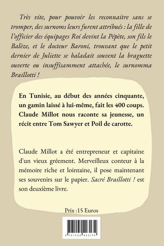 En Tunisie, au début des années cinquante, un gamin laissé à lui-même, fait les 400 coups. Claude Millot nous raconte sa jeunesse, un récit entre Tom Sawyer et Poil de carotte.