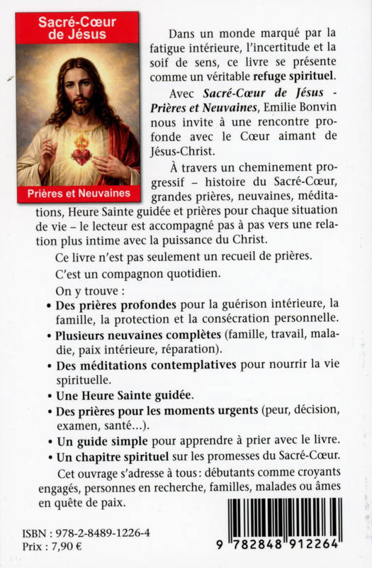 Le Sacré-Cœur de Jésus est la flamme de l’amour divin qui ne s’éteint jamais. Il console, guérit, fortifie et relève tous ceux qui s’abandonnent à lui. Dans ce livre profondément inspiré, Émilie Bonvin rassemble les plus belles prières et neuvaines au Sacré-Cœur de Jésus, accompagnées de méditations pour entrer dans un véritable dialogue intérieur avec le Christ. Ces prières peuvent transformer la vie quotidienne : elles apaisent le cœur dans les moments d’épreuve et de solitude ; elles réparent les blessures intérieures par la tendresse et la miséricorde du Cœur de Jésus ; elles renouvellent la confiance en Dieu dans les temps d’incertitude ; elles ouvrent à la paix, au pardon et à la réconciliation ; elles fortifient la foi et ravivent la joie de vivre sous le regard de l’Amour. Jour après jour, ces pages deviennent un refuge spirituel, un lieu de rencontre avec Celui qui aime sans mesure. Que vous soyez en recherche, en souffrance, ou simplement désireux d’approfondir votre relation à Dieu, ce recueil vous accompagnera comme un ami fidèle sur le chemin de la prière.