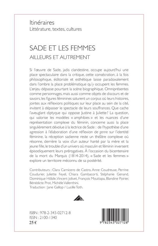 La consécration, à la fois philosophique, éditoriale et esthétique de l'oeuvre de Sade laisse paradoxalement dans l'ombre la place qu'y occupent les femmes. Omniprésentes comme personnages, les figures féminines saturent un corpus où leurs histoires, jointes aux réflexions politiques sur leur place au sein de la cité, invitent à dépasser le spectacle de leurs souffrances. A l'occasion du bicentenaire de la mort de Sade (1814-2014), Sade et les femmes explore un territoire méconnu de sa postérité.