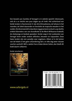 Een bezoek aan Gambia of Senegal is in velerlei opzicht interessant, ook als u er slechts een paar dagen op uit trekt. Het achterland van beide landen is fascinerend. Er zijn drie klimaatzones, de Sahara in het noorden, de Sahel daaronder en tenslotte de tropische wouden in het zuiden. De dierenwereld is daardoor erg gevarieerd, zo kunt u op slechts enkele kilometers van uw strandhotel al de West-Afrikaanse krokodil, de sitatoenga en bosbok opzoeken. Verder weg in het zuidoosten van Senegal leven onder andere olifanten, leeuwen en luipaarden. Deze twee landen zijn een paradijs voor vogelaars. Alleen al in de tuinen van de hotels is het geen uitzondering dat u er elke dag weer nieuwe soorten aantreft. Wilt u weten hoe al deze dieren heten, dan biedt dit boek daarin uitkomst.