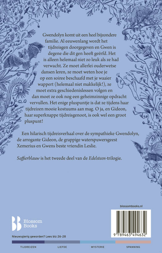 Saffierblauw is de opvolger van Robijnrood en het tweede deel in de succesvolle Edelsteentrilogie. De trouwe volgers van Blossom Books wachten nu al een tijdje met smart op dit tweede deel!