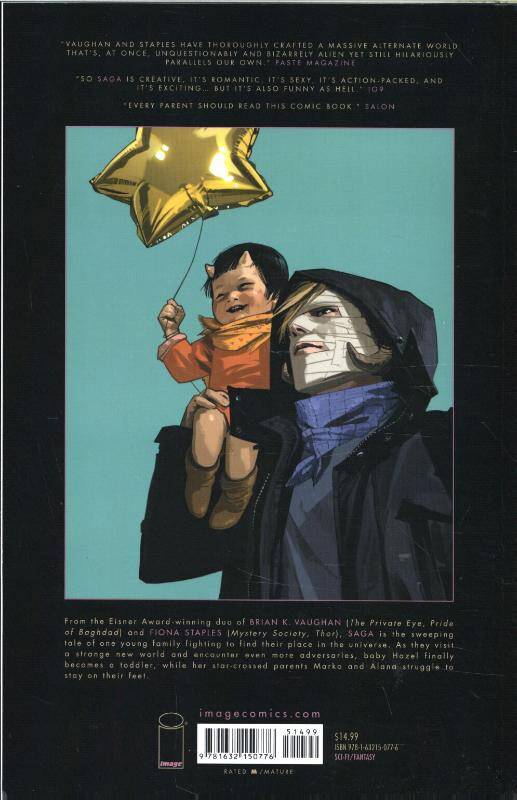 The #1 New York Times bestseller returns! Visit new planets, meet new adversaries, and explore a very new direction as Hazel becomes a toddler, while her family struggles to stay on their feet. Collects Saga #19-24.