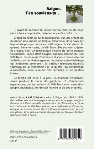 Avant la décision du retour sur sa terre natale, mon père a beaucoup hésité, pesé le pour et le contre... C'était en 1960, ce fut la découverte, par une enfant qui ne parlait pas encore sa langue maternelle, d'un pays sur le point de plonger dans ce conflit majeur du XXe siècle: la guerre, dite américaine, du Viêt Nam. Ses souvenirs, épars et croisés, sont un témoignage insolite de cette époque tourmentée, vécue dans Saigon, capitale déchue du Sud Viêt Nam. Ils raniment l'ambiance disparue d'une ville qui fut belle, une famille bourgeoise, l'école française - héritage de l'Indochine coloniale -, la tradition d'anciens rituels à l'épreuve de la modernité; et la guerre, de l'engrenage à l'escalade, avec le retour des cercueils, et les destins brisés. Le temps est enfin à la paix. La tristesse s'estompe, seule perdure la dette de gratitude. Et d'immenses espérances, car les enfants du Viêt Nam sont issus d'un peuple courageux, fier de son histoire et de ses origines.