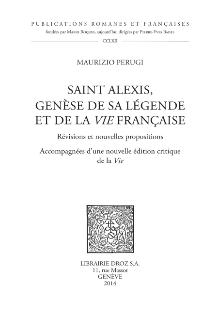 Il était urgent de consacrer une réflexion neuve au Rythme latin sur saint Alexis, dont l’auteur a abrégé un texte proche de BHL 292, soit une Vie latine qui circulait dans la région austro-bavaroise. On sait que le Rythme et la Vie française de saint Alexis ont plusieurs points en commun, dont la disparition du nom d’Edesse au profit d’Alsis. Comme les documents historiques ne mentionnent cette ville arménienne qu’à partir de 1112-1114 au plus tôt, c’est après cette date que les deux poèmes ont dû être composés. Par ailleurs la relation très étroite entre le prologue du Rythme et le début d’un poème carolingien, les versus de Ioseph, nous amène à conclure que le Rythme précède le poème vernaculaire, duquel il faudra par conséquent abaisser la datation. D’autres chapitres portent sur l’archétype grec à l’origine de la plupart des Vies grecques et latines connues ainsi que sur l’identité syriaque d’Alexis. Grâce à l’activité de personnages tels que Léon IX, Otloh de St. Emmeram, et Gerhoch de Reichersberg, au XIIe siècle saint Alexis a été intégré de plein droit au sanctoral de la réforme bénédictine émanant de l’abbaye d’Hirsau.