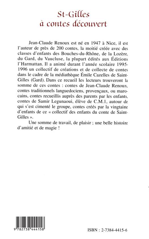 Jean-Claude Renoux a animé durant l'année scolaire 1995-1996 un collectif de créations et de collecte de contes dans le cadre de la médiathèque Émile Cazelles de Saint-Gilles (Gard). Dans ce recueil, les lecteurs trouveront la somme de ces contes : contes de l'auteur, contes traditionnels languedociens, provençaux, ou marocains, contes recueillis auprès des parents par les enfants, contes des élèves. Une somme de travail, de plaisir ; une belle histoire d'amitié et de magie.