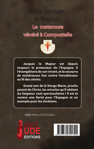 Jacques le Majeur surnommé matamore est depuis toujours le protecteur de l'Espagne. Il l'évangélisera de son vivant, et la secourra de nombreuses fois contre l'envahisseur au fil des siècles. Grand ami de la Vierge Marie, proche parent du Christ, les miracles qu'il obtient du Seigneur sont hauts en couleurs ! Il va à l'assaut lors des batailles , obtient la résurrection de tout un village , beaucoup de malades guérissent suite à leur pèlerinage... Saint Jacques le Majeur, honoré à Compostelle, est et restera une fierté pour l'Espagne et un exemple pour les chrétiens.