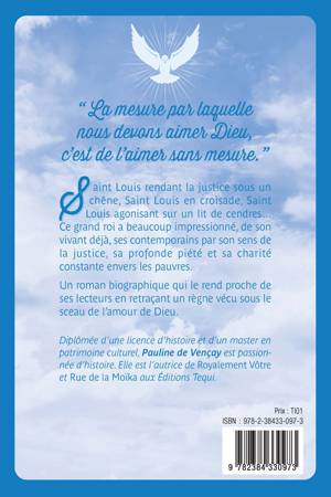 De son vivant, Saint Louis frappait déjà ses contemporains par son sens de la justice, sa profonde piété et sa grande charité envers les pauvres. Ce roi profondément chrétien, fier et conscient des promesses de son baptême, s'efforça de faire régner la justice et la paix dans sa vocation de saint et d'homme d'État. Si la mémoire populaire garde de lui l'image d'un souverain rendant la justice à l'ombre d'un vieux chêne proche de son château à Vincennes, ce roman le rend proche de ses lecteurs en retraçant un règne vécu sous le sceau de la paix et de la charité.