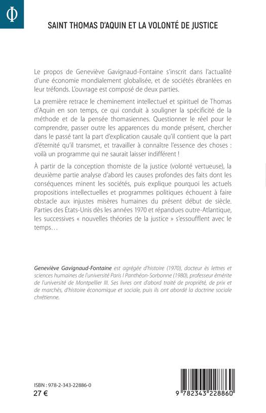 Economie globalisée, sociétés ébranlées... Cet ouvrage sur la pensée de Thomas d’Aquin s’inscrit dans l’actualité. La première partie retrace son cheminement intellectuel et spirituel, soulignant la spécificité de la méthode et de la pensée thomasiennes. Questionner le réel pour le comprendre, passer outre les apparences du monde présent, c’est travailler à connaître l’essence des choses. À partir de la conception thomiste de la justice (volonté vertueuse), la deuxième partie analyse les causes profondes des faits dont les conséquences minent les sociétés, puis explique pourquoi les propositions intellectuelles et programmes actuels politiques échouent à faire obstacle aux injustices de ce siècle.