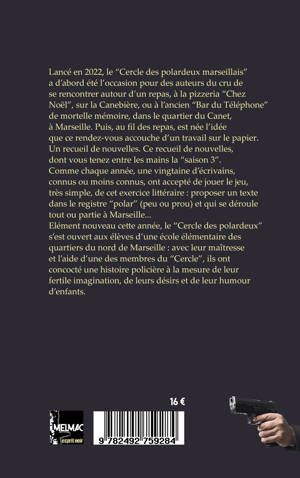 Pour la 3e année consécutive, une vingtaine d'auteurs marseillais (à chaque fois renouvelée) sont réunis par Melmac pour livrer des nouvelles policières et noires qui se déroulent à Marseille. Comme chaque fois également, le livre est illustrée de photos en noir et blanc de Marseille.
