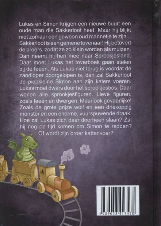 Lukas en Simon krijgen een nieuwe buur: een oude man die Sakkerloot heet. Maar hij blijkt niet zomaar een gewoon oud mannetje te zijn... Sakkerloot is een gemene tovenaar! Hij betovert de broers, zodat ze zo klein worden als muizen. Dan neemt hij hen mee naar Sprookjesland. Daar moet Lukas het toverboek gaan stelen bij de feeën. Als Lukas niet terug is voordat de zandloper doorgelopen is, dan zal Sakkerloot de piepkleine Simon aan zijn katers voeren. Lukas moet dwars door het sprookjesbos. Daar wonen alle sprookjesfiguren. Lieve figuren, zoals feeën en dwergen. Maar ook gevaarlijke! Zoals de grote grijze wolf en een driekoppig monster en een enorme, vuurspuwende draak. Hoe zal Lukas zich daar doorheen slaan? Zal hij nog op tijd komen om Simon te redden? Of wordt zijn broer kattenvoer?