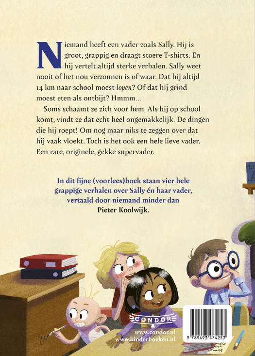 Daarom wil Sally het liefst dat haar vader niet altijd de waarheid vertelt. Dat is veel leuker! Met meer dan 3 miljoen verkochte boeken is Sally’s vader een waanzinnig groot succes in Denemarken. Nu voor het eerst naar het Nederlands vertaald door de bekende kinderboekenschrijver Pieter Koolwijk.