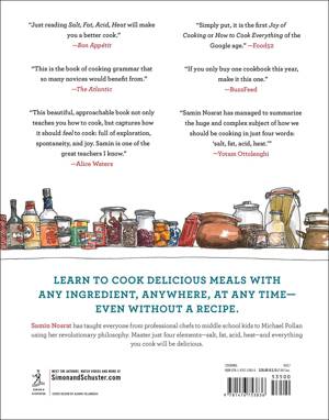 Salt, Fat, Acid, Heat, an ambitious new approach to cooking. Chef and writer Samin Nosrat has taught everyone from professional chefs to middle school kids to author Michael Pollan to cook using her revolutionary, yet simple, philosophy. Master the use of just four elements--