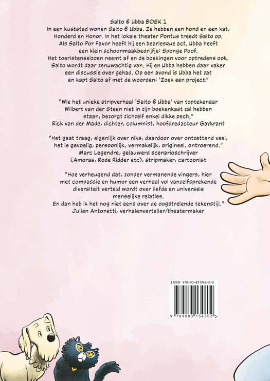Ubba heeft een klein schoonmaakbedrijfje: Sponge Poof. Het toeristenseizoen neemt af en de boekingen voor optredens ook. Salto wordt daar zenuwachtig van. Hij en Ubba hebben daar vaker een discussie over gehad. Op een avond is Ubba het zat en kapt Salto af met de woorden: ‘Zoek een project!’ “Wie het unieke stripverhaal ‘Salto & Ubba’ van toptekenaar Wilbert van der Steen niet in zijn boekenkast zal hebben staan, bezorgt zichzelf enkel dikke pech.” Rick van der Made, dichter, columnist, hoofdredacteur Gaykrant “Het gaat traag, eigenlijk over niks, daardoor over ontzettend veel, het is gevoelig, persoonlijk, vermakelijk, origineel, ontroerend.” Marc Legendre, gelauwerd scenarioschrijver (Amoras, Rode Ridder etc), stripmaker, cartoonist “Hoe verheugend dat, zonder vermanende vingers, hier met compassie en humor een verhaal vol vanzelfsprekende diversiteit verteld wordt over liefde en universele menselijke relaties. En dan heb ik het nog niet eens over de oogstrelende tekenstijl.” Julien Antonetti, verhalenverteller/theatermaker