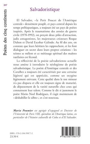 El Salvador, le Petit Poucet de l'Amérique centrale densément peuplé, et pays central depuis les temps préhispaniques, a toujours été un pays de poètes inspirés. Après le traumatisme des années de guerre civile (1970-1992), on perçoit deux pôles d'attraction, jadis antagonistes, les majestueux créateurs Roque Dalton et David Escobar Galindo. Au fil des ans, on constate que leurs héritiers les rapprochent, et les font dialoguer en secret dans leurs propres créations les teintes se mêlent et ce métissage spirituel des maîtres tutélaires est fécond. La réflexivité de la poésie salvadorienne actuelle nous amène à introduire le néologisme de poésie salvadoristique. La poésie d'Amérique centrale et des Caraïbes a toujours été caractérisée par une certaine légèreté qui est appréciée, comme un oxygène légèrement enivrant. Cette qualité dans le ton mineur n'a pas disparu et elle est toujours signe de maturité, de dépassement de la vanité naturelle chez ceux qui connaissent leur talent. Comme le dit si justement le poète Mario Noel Rodríguez, il s'agit maintenant de déshabiller le zèbre, et c'est nouveau.