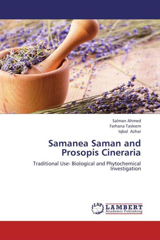 Plants a wealth of secondary metabolites have been used for thousands of years to treat different ailments. A number of these natural products have shown biological and pharmacological activities and serve as the starting point in the development of modern medicines. Screening of crude plant extracts open the door for the way for discovery of novel bioactive compounds and elucidation of their structures leads towards new synthetic preparations, which can be administered in reproducible, accurate doses for particular therapeutic purposes. There is less known information about Samanea saman Merr., and Prosopis cineraria Druce. However, authors in this book present comprehensive information about traditional uses, biological and phytochemical investigation of Samanea saman Merr., and Prosopis cineraria Druce.