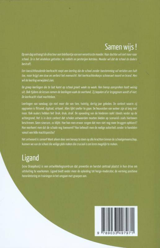 Op een dag ontvangt de directeur een telefoontje van een verontruste moeder. Haar dochter wil niet meer naar school. Ze is het eindeloze getreiter, de roddels en pesterijen beu. Moeder wil dat de school de daders bestraft. Een toezichthoudende leerkracht roept een leerling die de school zonder toestemming wil verlaten een halt toe, maar krijgt een duw en verliest het evenwicht. Het leerkrachtenkorps schreeuwt moord en brand. Men wil de leerling verwijderd zien. De groep leerlingen die te laat komt op school groeit week na week. Hen hierop aanspreken haalt weinig uit. Ook tijdens de lessen nemen de leerlingen vaak de overhand. Zij bepalen of er lesgegeven wordt of niet. De leerkracht staat machteloos. Leerlingen van vandaag zijn niet meer die van tien, twintig, dertig jaar geleden.De context waarin zij opgroeien is flitsend, digitaal, virtueel. Alles lijkt sneller te gaan. De houvasten van weleer zijn al lang niet meer. Ook ouders hebben het 'druk, druk, druk'. De opvoeding van de kinderen raakt steeds verder op de achtergrond. Het is in deze context dat scholen antwoorden moeten bieden op scenario's zoals hierboven beschreven. Geen sinecure, zo blijkt. Hoe kan men ervoor zorgen dat men niet nog meer bruggen opblaast? Hoe voorkomt men dat de schade nog toeneemt? Hoe behoudt men de nodige autoriteit zonder te handelen vanuit een kille machtspositie? Het antwoord is samen! Want alleen door een beroep te doen op alle krachten binnen de schoolgemeenschap, kunnen we van de school die veilige plek maken die cruciaal is om leren mogelijk te maken.