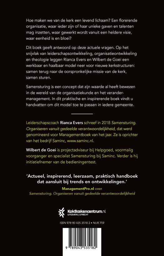 In Samensturing in de kerk werken Rianca Evers en Wilbert de Goei een werkbaar en haalbaar model uit voor nieuwe kerkstructuren: samen terug naar de oorspronkelijke missie van de kerk, samen sturen. Samensturing is een concept dat zijn waarde al heeft bewezen in de wereld van de organisatiekunde en verandermanagement. In dit praktische en inspirerende boek vindt u handvatten om dit model toe te passen in iedere gemeente.