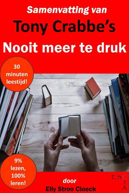 De wereld van vandaag is er een van 'teveel': teveel werk, teveel communicatie, teveel concurrentie, teveel onzekerheid en teveel informatie. We doen ons best om bij te blijven, maar onvermijdelijk is dat we achteropraken, en zo blijven we achter met een gevoel van falen wat moeilijk af te schudden is. Tony Crabbe prikt de mythe door dat tevredenheid op ons werk komt doordat we alles af krijgen. Integendeel, dat wat ons laat bloeien is het gevoel dat we meester zijn over ons leven, de aandacht die we geven aan het verschil maken, de verbinding met onze dierbaren en het zorgen voor momentum, noodzakelijk voor verandering. Als je je carrière – en je leven – wilt beheersen, kun je er maar beter voor zorgen het niet te druk te hebben voor dit boek!