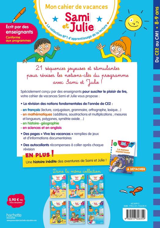 Spécialement conçu par des enseignants pour susciter le plaisir de lire, votre cahier de vacances Sami et Julie vous propose :