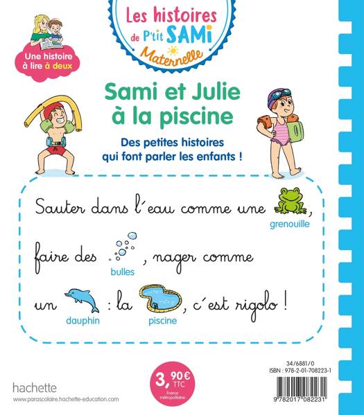 Si Julie est déjà très à l’aise dans l’eau, Sami montre quelques signes d’inquiétude... Mais ses craintes vont vite se dissiper, car… sauter dans l’eau comme une grenouille, faire des bulles, nager comme un dauphin : la piscine, c’est rigolo !