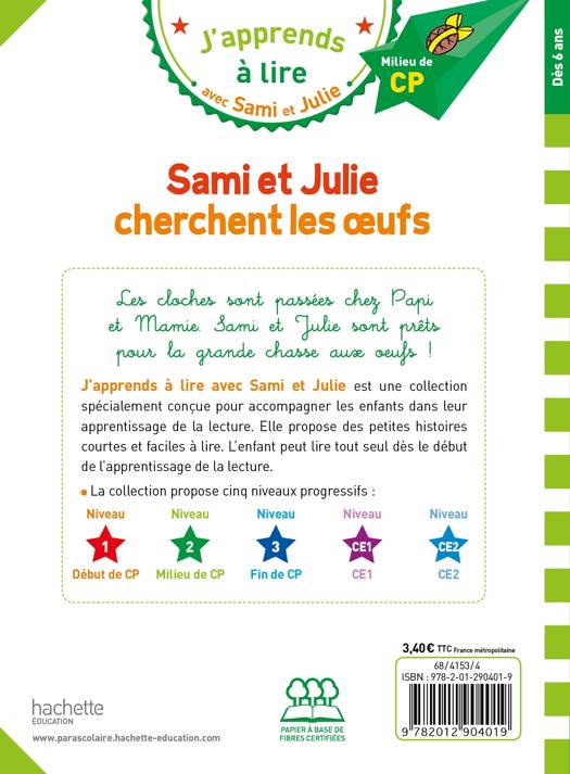 « J’apprends à lire avec Sami et Julie » est une collection de petites histoires spécialement conçue pour les enfants apprenant à lire. Le texte est écrit en gros, les mots sont bien détachés les uns des autres et les lignes bien espacées. Les histoires sont courtes, drôles et très faciles à lire. Écrites avec des mots en adéquation avec leur progression, une quantité de texte à lire réduite et adaptée, pour que l’enfant reste motivé et prenne confiance. En plus de la petite histoire, le livre contient : des conseils pour accompagner l’enfant dans ses premières lectures, la présentation des personnages, des activités pour préparer la lecture, et à la fin : « As-tu bien compris l’histoire ? » pour donner du sens à ce que l’enfant a lu et aller plus loin que le simple déchiffrage ainsi qu’une rubrique « Et toi, qu’en penses-tu ? » avec des petites questions pour « faire réfléchir » ou simplement discuter autour de l’histoire.