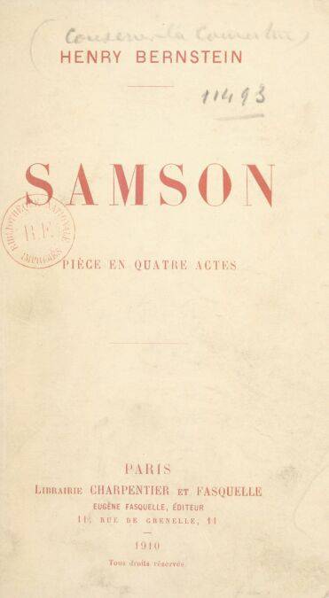 Pièce en quatre actes représentée pour la première fois sur le théâtre de la Renaissance le 6 novembre 1907