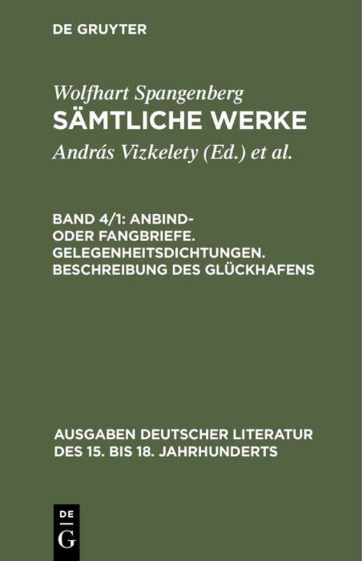 5. Sämtliche Werke, Band 4/1, Anbind- oder Fangbriefe. Gelegenheitsdichtungen. Beschreibung des Glückhafens