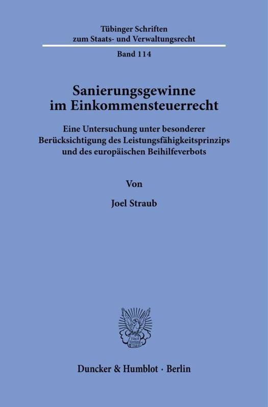 English summary: Restructuring Gains in Income Tax Law. An Investigation with Special Consideration of the Ability-to-Pay Principle and the European ban on State Aid The tax implications of restructuring gains have been a topic of debate in legislation, jurisprudence and literature for more than a hundred years, with varying results and justifications. The Federal Fiscal Court's decision on the reorganisation decree in 2016 and the subsequent introduction of new legal regulations, this development has come to an end so far. The tax exemption of restructuring-related profits under Section 3a of the German Income Tax Act (EStG), which is relevant in practice and primarily motivated by economic policy, nevertheless raises numerous questions under European, constitutional and ordinary law. German description: Die steuerliche Behandlung von Sanierungsgewinnen ist ein Themenkomplex, dem sich Gesetzgebung, Rechtsprechung und Schrifttum bereits seit mehr als hundert Jahren mit unterschiedlichen Ergebnissen und Begrundungen widmen. Mit der Entscheidung des Grossen Senats des Bundesfinanzhofs zum Sanierungserlass im Jahr 2016 und der hierauf antwortenden Einfuhrung gesetzlicher Neuregelungen hat diese Entwicklung zunachst ein Ende gefunden.Die praxisrelevante, vor allem wirtschaftspolitisch motivierte Steuerbefreiung sanierungsbedingter Gewinne durch 3a EStG wirft gleichwohl zahlreiche europa-, verfassungs- und einfachrechtliche Fragen auf, mit denen sich die vorliegende Arbeit eingehend beschaftigt. Aufgrund seiner Ausgestaltung kehrt 3a EStG als Sozialzwecknorm trotz der Steuerbefreiung in erheblichem Umfang zum Regelmass einer leistungsfahigkeitsgerechten Besteuerung zuruck und kann im Ergebnis durch aussersteuerliche Gemeinwohlzwecke gerechtfertigt werden. Die Arbeit zeigt auf, dass europa- und beihilferechtlich eine Rechtfertigung indes nicht gelingen kann.