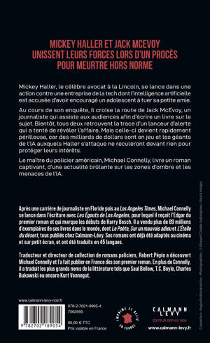Au cours de son enquête, il croise la route de Jack McEvoy, un journaliste qui assiste aux audiences afin d’écrire un livre sur le sujet. Bientôt, tous deux retrouvent la trace d’une lanceuse d’alerte qui a tenté de révéler l’affaire. Mais celle-ci devient rapidement périlleuse, car des milliards de dollars sont en jeu et le géant de l’IA auquel Haller s’attaque ne reculera devant rien pour protéger ses intérêts.