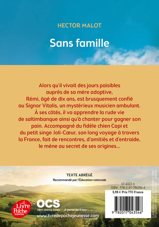 Rémi n'a qu'une dizaine d'années mais sa vie est déjà bien mouvementée : enfant abandonné, recueilli par des paysans, il est cédé à un saltimbanque, Vitalis. Les voilà partis avec des animaux savants sur les routes de France. Une longue errance commence alors pour Rémi, semée de rencontres, de coups durs et d'espoirs insensés. Rémi parviendra-t-il enfin à retrouver ses vrais parents ?