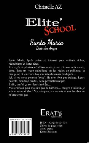 Santa Maria, lycée privé et internat pour enfants riches, redoublants et fortes têtes. Renvoyée de plusieurs établissements, je me retrouve cette année, donc, dans un lycée catholique où les règles de politesse, la discipline et les coups bas sont interdits mais prodigués... Ici, si les mecs pensent "sexe", ils n'en font pas étalage. Leurs parents, bien trop prudes, ne le permettraient pas. Enfin, sauf si ça sert leurs intérêts... Mais l'amour pour moi n'a pas de barrière... malgré Vladimir, je suis et resterai Moi ! Vos attaques, vos secrets et vos bombes ne m'arrêteront pas !