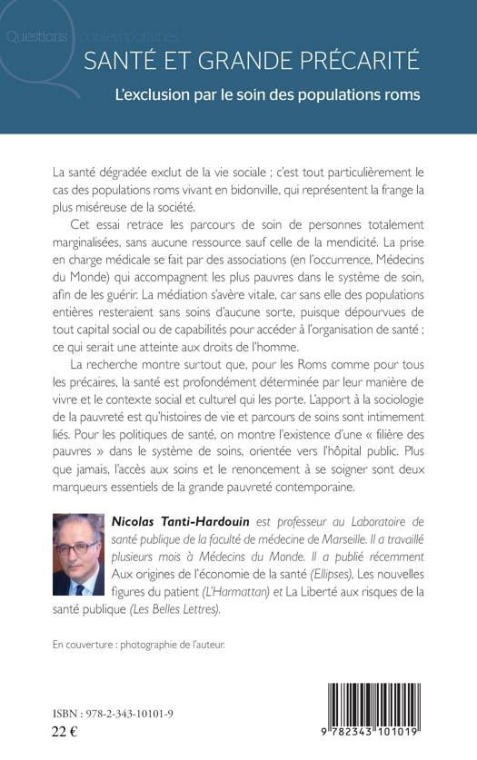 La santé dégradée exclut de la vie sociale, et c'est tout particulièrement le cas des populations roms vivant en bidonville. Cet essai retrace les parcours de soin de personnes totalement marginalisées, sans aucune ressource sauf celle de la mendicité. L'étude entend montrer que, pour les Roms comme pour tous les précaires, la santé reste profondément déterminée par leur manière de vivre et le contexte social et culturel qui les porte. Plus que jamais, l'accès aux soins et le renoncement à se soigner sont ainsi deux marqueurs essentiels de la grande pauvreté contemporaine.