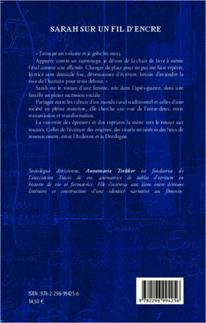 "J'attrape un volume et je gobe les mots."Sarah est le roman d'une femme, née dans l'après-guerre, dans une famille en pleine ascension sociale. Partagée entre les valeurs d'un monde rural traditionnel et celles d'une société en pleine mutation, elle cherche une voie de l'entre-deux, entre transmission et transformation. La traversée des épreuves et des ruptures la mène vers le retour aux sources, celles de l'écriture des origines.