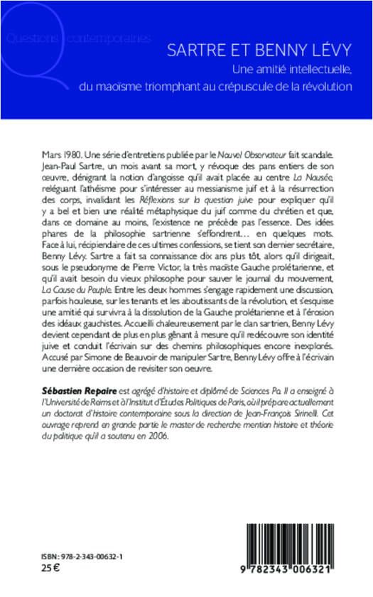 Mars 1980. Une série d'entretiens publiés par le Nouvel Observateur fait scandale. Jean-Paul Sartre, un mois avant sa mort, y révoque des pans entiers de son oeuvre, dénigrant la notion d'angoisse et reléguant l'athéisme pour s'intéresser au messianisme juif et à la résurrection des corps. Face à lui, son dernier secrétaire, Benny Lévy. Accusé par Simone de Beauvoir de manipuler Sartre, Benny Lévy offre à l'écrivain une dernière occasion de revisiter son oeuvre.