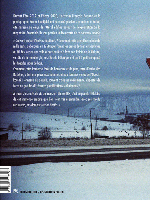 Un voyage au coeur de la Russie d’aujourd’hui : un cahier de 32 photographies couleur et noir et blanc assorti d’un récit composé de 32 portraits d’habitants de la ville de Satka.<br /><br /> En 2019, l’Ambassade de France en Russie et l’Institut français invitent le photographe Bruno Boudjelal à réaliser un travail sur la Russie. Celui-ci propose à l’écrivain François Beaune de l’accompagner. <br /> Pour leur résidence de création, ils cherchent une petite ville à même d’incarner la Russie contemporaine. <br /> Ce sera Satka, ville minière de l’Oural où la vie s’organise autour de Magnezit, une entreprise qui extrait un minéral, la magnésite, dont on fait des moules pour manipuler les métaux en fusion. <br /><br /> Qui sont aujourd’hui les habitants de Satka ? Comment vit-on à Satka ? <br /> Jusqu’au milieu du 18e siècle et l’arrivée des premiers paysans, forcés de quitter leurs villages de l’Ouest et de se transformer en ouvriers pour forger les armes du tsar, cette région de basse montagne est peu peuplée. C’est une terre d’estivage, une forêt de bouleaux, de pins et de fraises des bois. Pendant un siècle et demi, Satka est un camp de travail pour les ouvriers des hauts fourneaux. Puis, la découverte de la magnésite au début du 20e siècle et son exploitation font de Satka une ville, officiellement, en 1937. <br /> Elle est aujourd’hui une unité de production de 30 000 habitants, avec ses HLM des années 60-70 typiques de cet oblast industriel de Tchéliabinsk.<br /><br /> Entre 2019 et 2020, le photographe et l’écrivain séjournent à Satka à deux reprises (un été et un hiver), partant à la rencontre de ses habitants, tissant des liens avec une trentaine d’entre eux qui ont choisi de leur raconter leurs histoires.<br /><br /> Le livre s’ouvre sur un cahier de 32 photographies légendées : paysages dépouillés souvent austères, qui dévoilent la pauvreté des habitats et portraits, certains en surimpression sur les paysages, les corps s’inscrivant dans les paysages qui les déterminent. Le grain marqué, le flou assumé et les teintes tragiques suggèrent les parts d’ombre et les traumatismes de l’Histoire qui se lisent sur les visages.<br /><br /> Les photographies guident le lecteur jusqu’au récit qui les suit : 32 portraits de femmes et d’hommes que dresse François Beaune à partir d’une histoire, une anecdote intime, qu’ils lui confient : Svetlana, la belle enseignante aux origines mixtes, ukrainienne et bashkir, Marina la nostalgique de l’Union soviétique, Sergueï le tigre d’acier, nationaliste convaincu qui vit dans l’attente d’une guerre à venir, ou encore Alexander le dissident, opposant déclaré à Poutine, qui témoigne d’une Russie désunie. <br /><br /> Les récits collectés, entrecoupés de réflexions plus personnelles de l’auteur, dévoilent par petites touches la réalité quotidienne d’un peuple qui n’a cessé de subir les guerres, les déportations, le joug des pouvoirs politiques. Un peuple souvent nostalgique du passé soviétique qui vit avec le mythe d’une nation héroïque, fière et vertueuse. Un peuple qui résiste à l’absence de perspectives en nourrissant un imaginaire riche et poétique.