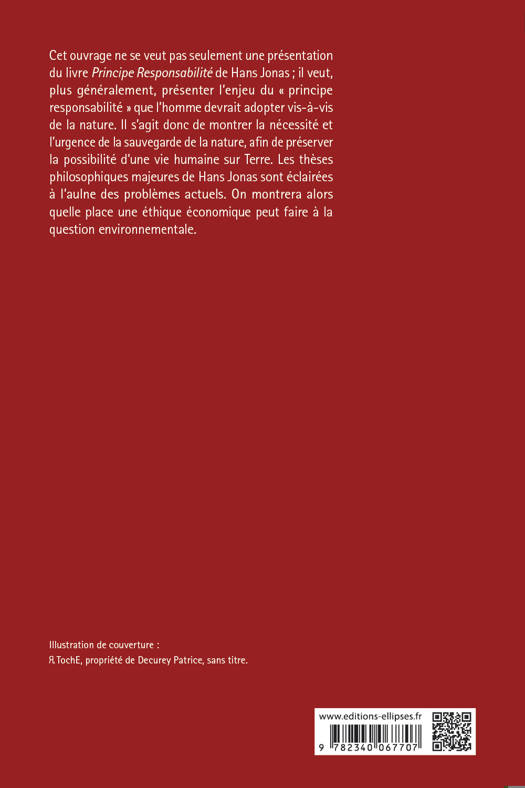 Cet ouvrage ne se veut pas seulement une présentation du livre Principe Responsabilité de Hans Jonas ; il veut, plus généralement, présenter l’enjeu du « principe responsabilité » que l’homme devrait adopter vis-à-vis de la nature. Il s’agit donc de montrer la nécessité et l’urgence de la sauvegarde de la nature, afin de préserver la possibilité d’une vie humaine sur Terre. Les thèses philosophiques majeures de Hans Jonas sont éclairées à l’aulne des problèmes actuels. On montrera alors quelle place une éthique économique peut faire à la question environnementale.