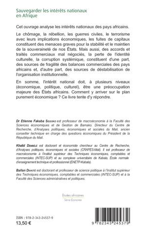 Cet ouvrage analyse les intérêts nationaux des pays africains. Le chômage, la rébellion, les guerres civiles, le terrorisme avec leurs implications économiques, les fuites de capitaux constituent des menaces graves pour la stabilité et le maintien de la souveraineté de nos États. Mais aussi, des accords et traités commerciaux mal négociés, la perte de l'identité culturelle, la corruption systémique constituent, d'une part, des sources de fragilité des balances commerciales des pays africains et, d'autre part, des sources de déstabilisation de l'organisation institutionnelle. En somme, l'intérêt national doit, à plusieurs niveaux (économique, politique, culturel), être une préoccupation majeure des États africains. Comment y arriver sur le plan purement économique ? Ce livre tente d'y répondre.
